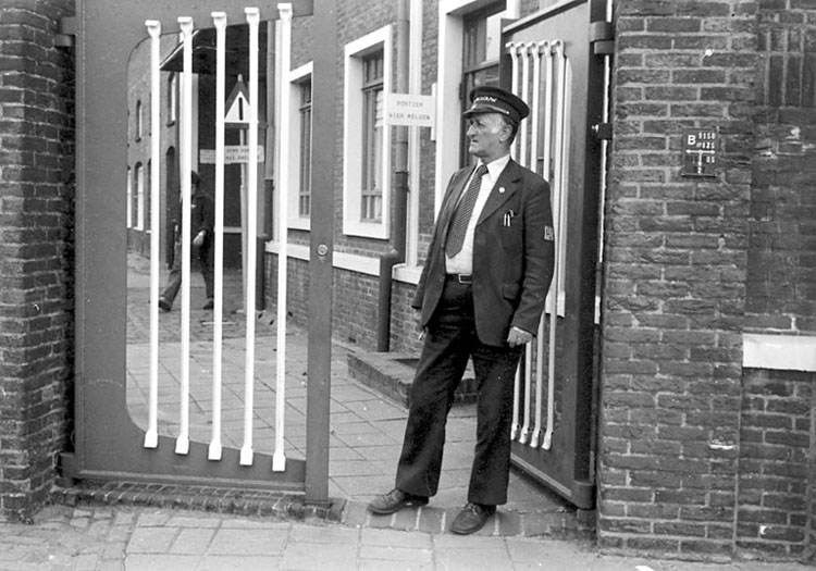 FotoAlbum Jelle Adema Afbeelding 54 van 62 De portier Jelle Adema. Met de reorganisatie in 1981 “sluit de poort” voor de productie van overige Fabrics en gordijn- en meubelstoffen